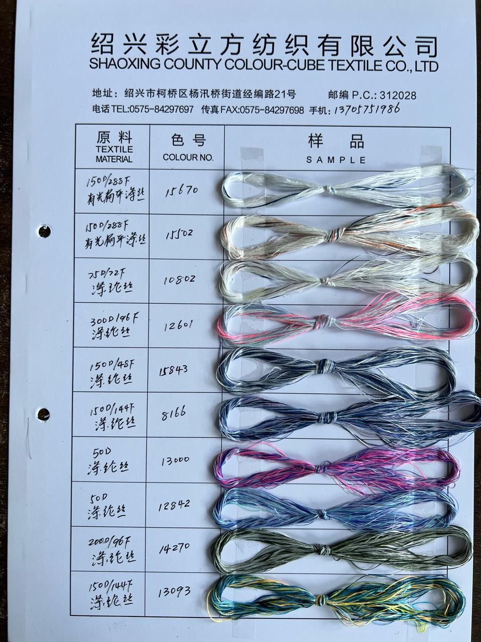 100D段染丝 2016新款色 针织圆机用纱...¥45.00
